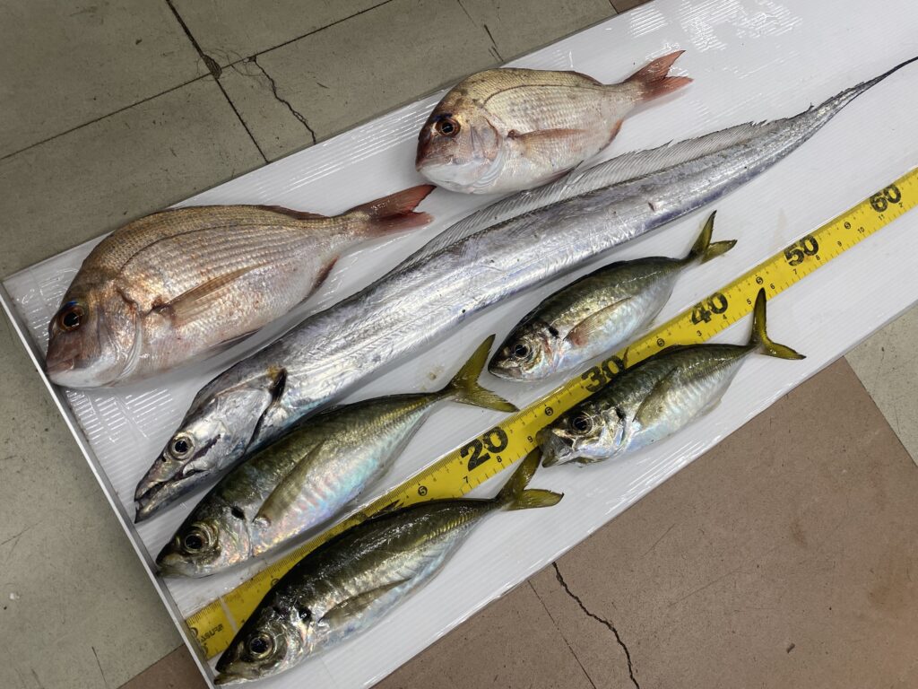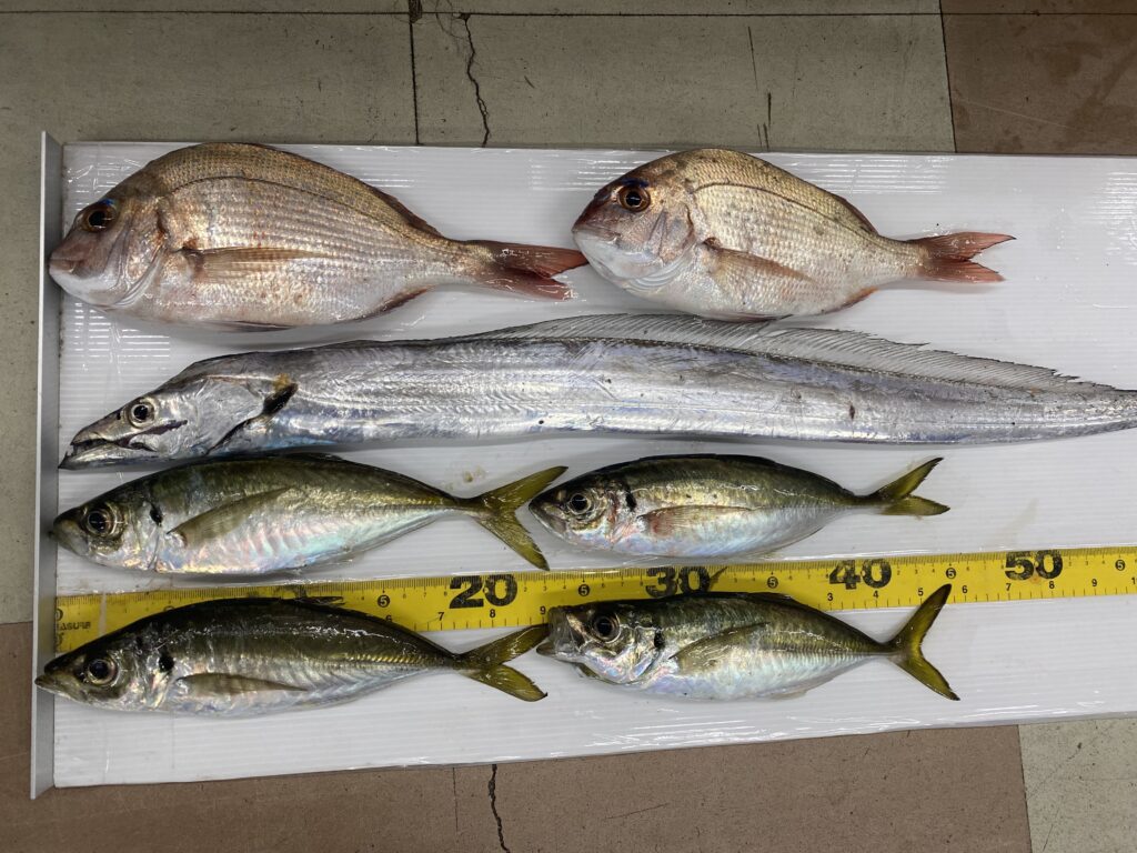 鯛は夕方に、アジは夜暗くなってから釣ったそうです!