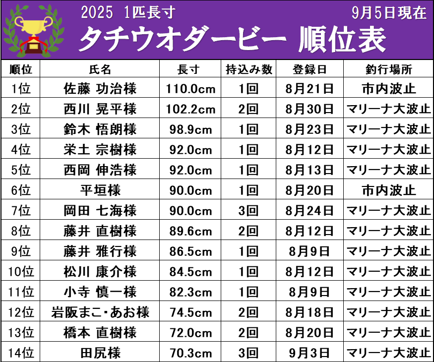 マリーナ大波止を中心に海南、下津周辺でタチウオ好調!
