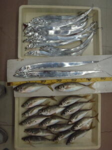 <8月28日(木)> *奈良のH様・F様* マリーナ大波止にて ウキ釣りとカゴ釣りの釣果です🎣 タチウオの69cmまで7本とアジの30cmまでを12匹!😍 アジは場所取りを兼ねてお昼頃からカゴ釣りで釣れたそうです! タチ […]