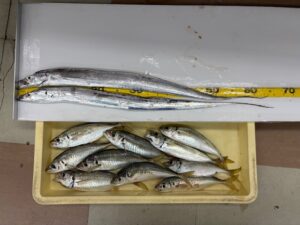 <9月17日(水)> *奈良のH様* マリーナ大波止にて ウキ釣りの釣果です🎣 タチウオの65.5cmまで2本! アジの25~27㎝まで10匹😍 アジはカゴ釣りで夕方に釣れたそうです! お疲れのところ、釣果のお持ち込みあ […]